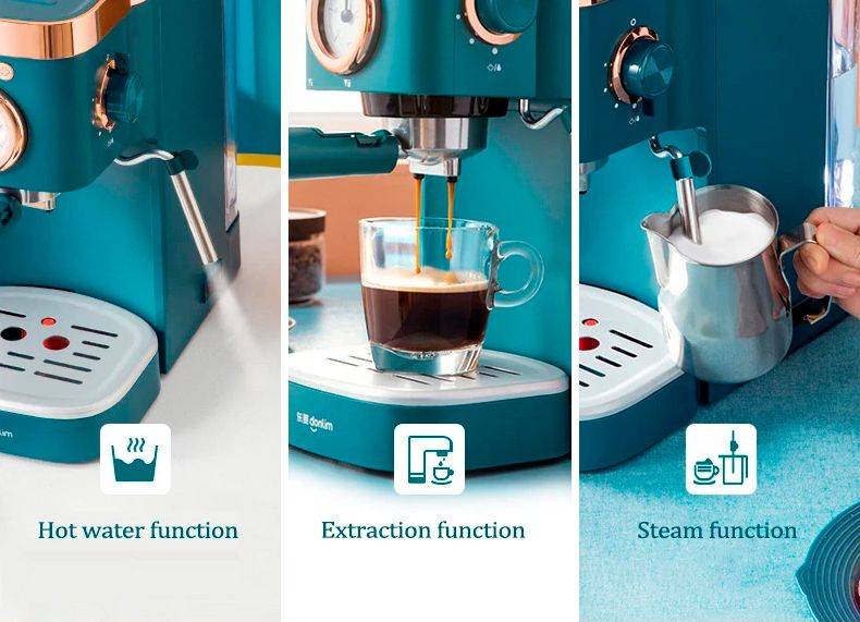 I'm in love with my new espresso coffee maker! It operates smoothly, and the power output brews my coffee swiftly each morning. The design is not only durable but also aesthetically pleasing. It's perfect for brewing multiple cups for my guests, and the steam milk frother adds the perfect touch to my lattes. 😄