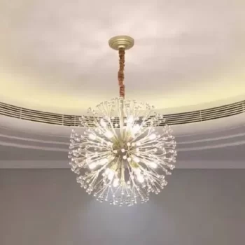 Whimsical and ethereal, this chandelier is a beauty whether lit or not. It resembles a crystal dandelion and adds a magical touch to any room.