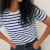 Step into the season with style and comfort in our Summer Short Sleeve Striped T-Shirt. Crafted with a keen sense of fashion and comfort, this knitted basic tee from Bornladies is designed for the modern woman who appreciates both flair and ease.